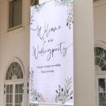 B0サイズの大きめタペストリーです。 ナチュラルな会場にぴったり。 お好みのサイズ、デザインでのオーダーも可能です。